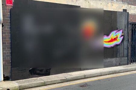 Graffiti that depicted a person shooting a gun at two other people with rainbow-coloured flames near their heads and crossed-out eyes has caused outrage, as the community speculates whether it was depicting the alleged murders of same-sex couple Jesse Baird and Luke Davies.