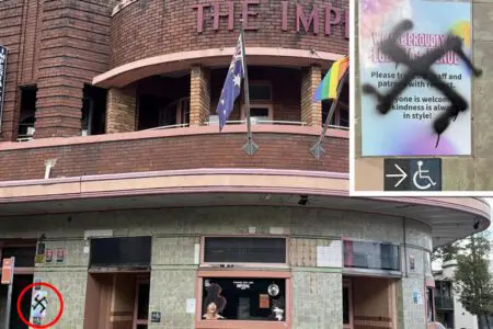 April 23, 2025, 4:57pmImperial Hotel, political posters vandalised with offensive graffiti Police are appealing for public assistance after a wave of offensive graffiti targeted the Imperial Hotel and political posters across Sydney’s inner west between the weekend and early Tuesday morning.